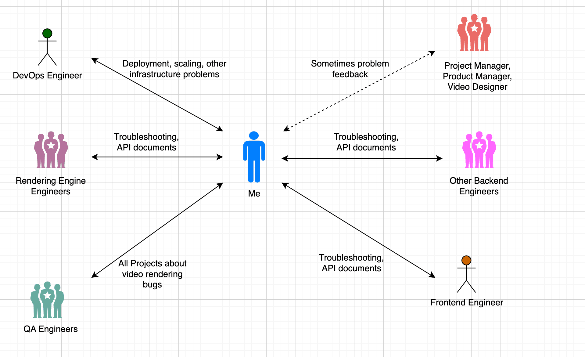 As you can see from the diagram, I was facing a huge amount of communication work while also being the core developer of the Flash Cut project. Every day, I was constantly interrupted—whether it was debugging rendering failures, answering questions from different teams, or troubleshooting unexpected issues. I couldn’t even get 20 minutes of uninterrupted focus to code or debug properly. But the development deadline didn’t change. It was extremely overwhelming